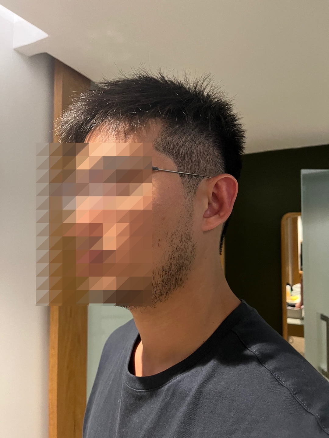 커트를 하고 목 뒤 쪽에 발라주셨던 알콜은 매우 강력해서남편이 따가워하긴 했다.