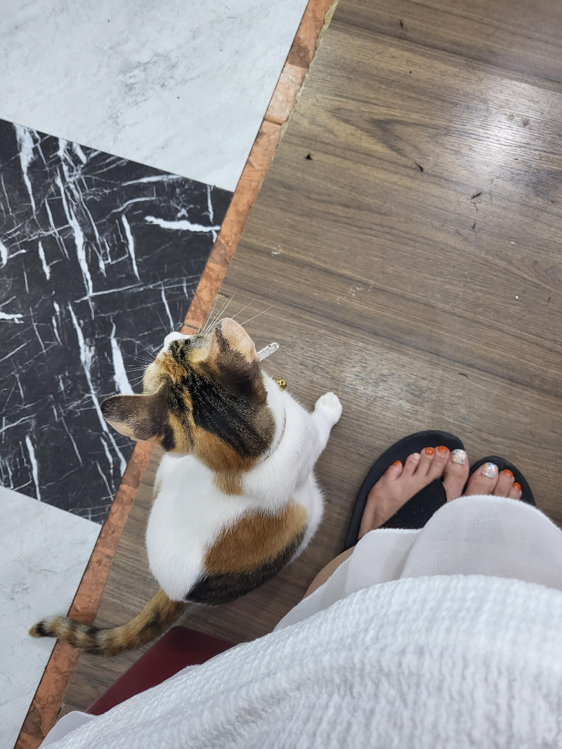 헤어디자이너 아드님같은 이 곳에 있던 아이가 내 옆에서 고양이들과 놀아주었다.