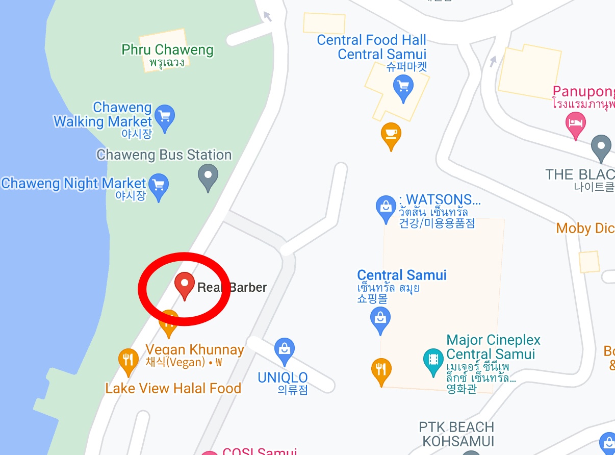 심지어 구글지도에서 '코사무이 바버샵' 검색 시 가장 많은 리뷰가 달린곳 , Real Barbor 이다